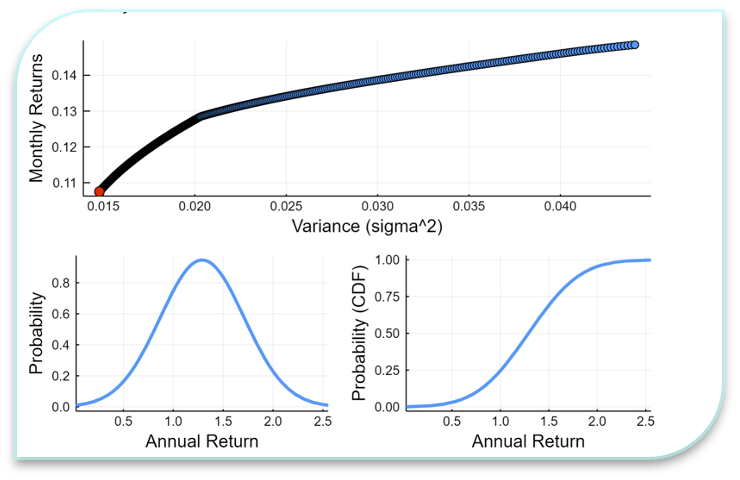 I created a dataset using a Monte Carlo simulation of 1,000 months’ returns (a huge challenge/gap in the modeling was the fact there is a strong time correlation between crypto monthly returns due to the cyclicality of the market).